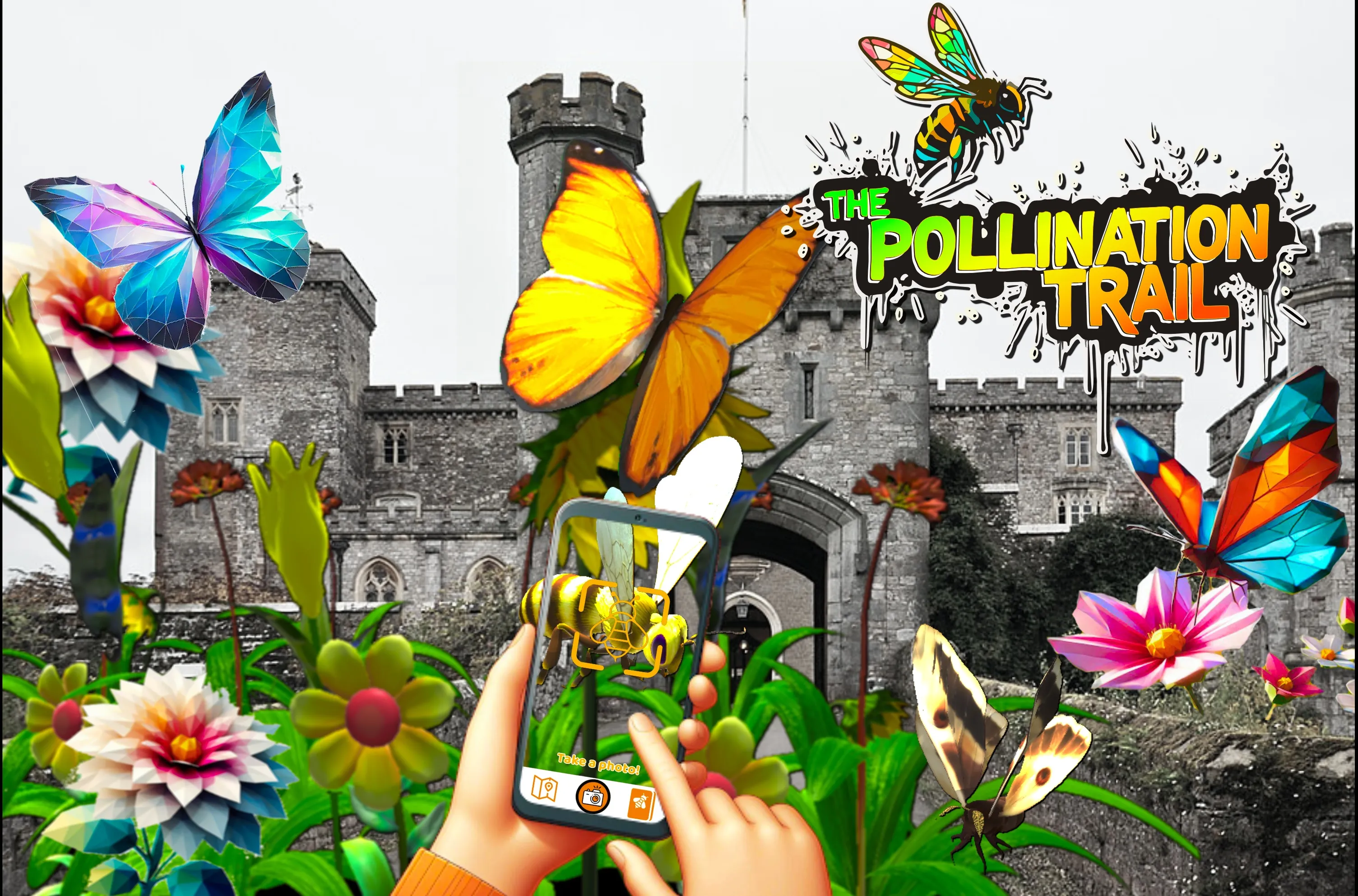 Download the Pollination Trail app to unlock the full augmented reality experience as you explore the grounds of Powderham Castle.